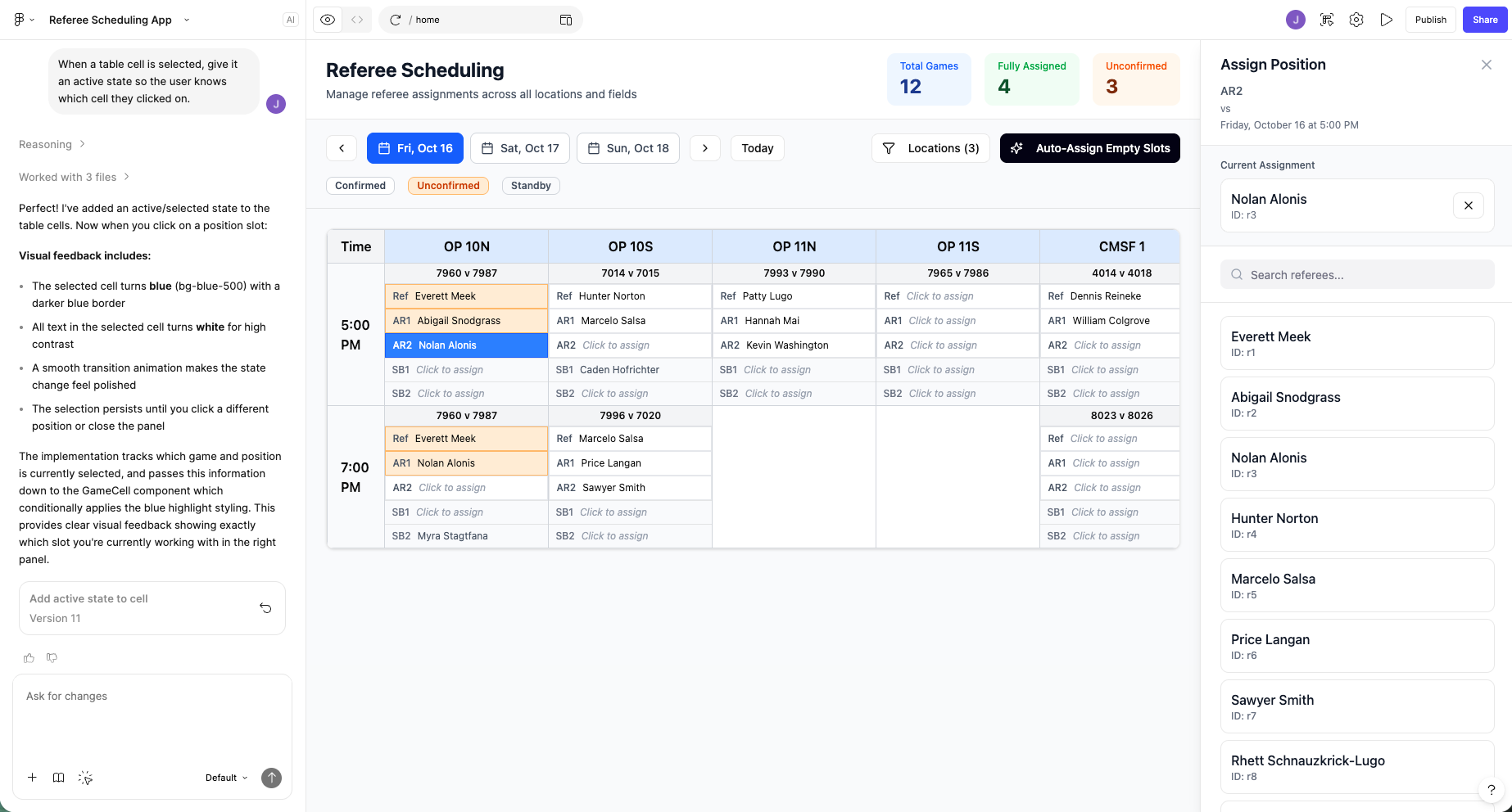Youth sports referee scheduling is operationally complex. Assignors must coordinate referee availability, certification levels, field locations, and league requirements across hundreds of games.